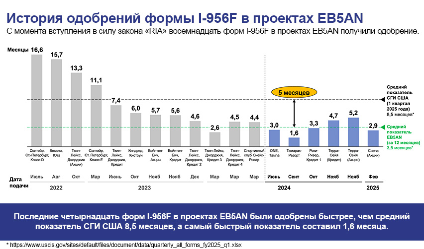 СГИ США одобрила семнадцать заявок по форме I-956F для десяти наших проектов: