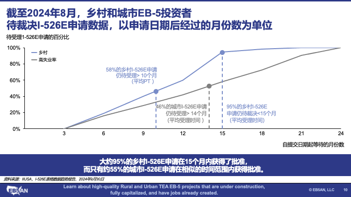 - 乡村I-526E申请的受理速度比城市申请快多少?