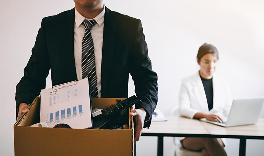 An Indian H1B employee packing up belongings after a layoff, symbolizing the instability faced by H1B visa holders in America and how an EB5 visa can help.