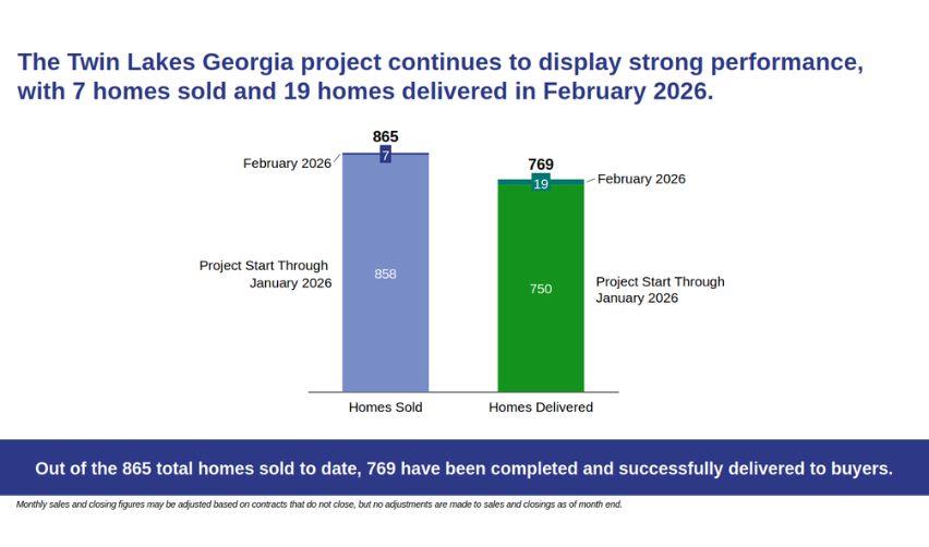 In February 2026 alone, the development recorded 19 home closings and 7 new sales.