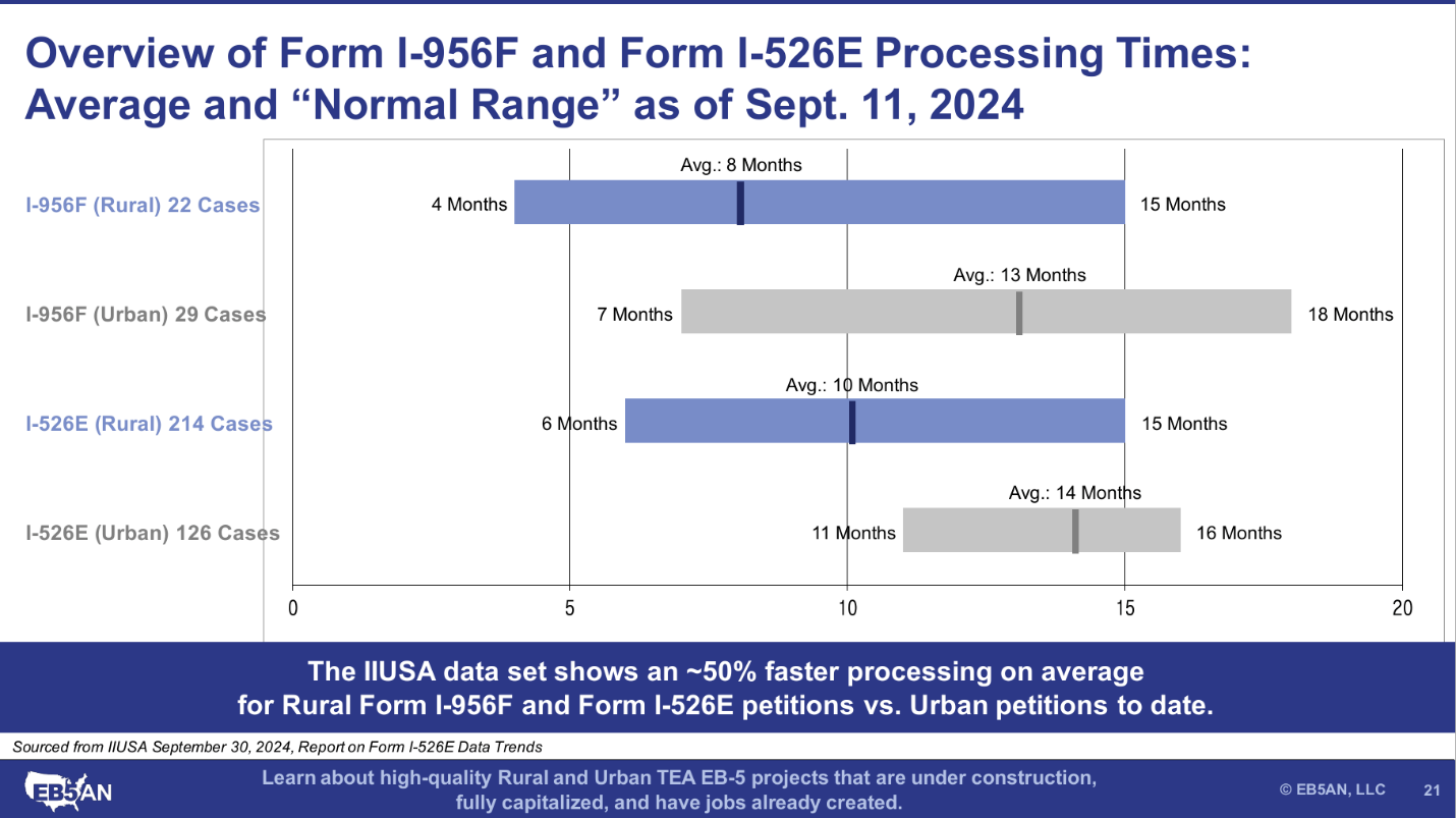 Over the two years since the RIA was signed into law, a reliable body of data for rural Form I-526E approvals has formed. It has now become commonplace across the EB-5 industry for rural Form I-526E petitions to be processed in 12 months or less.
