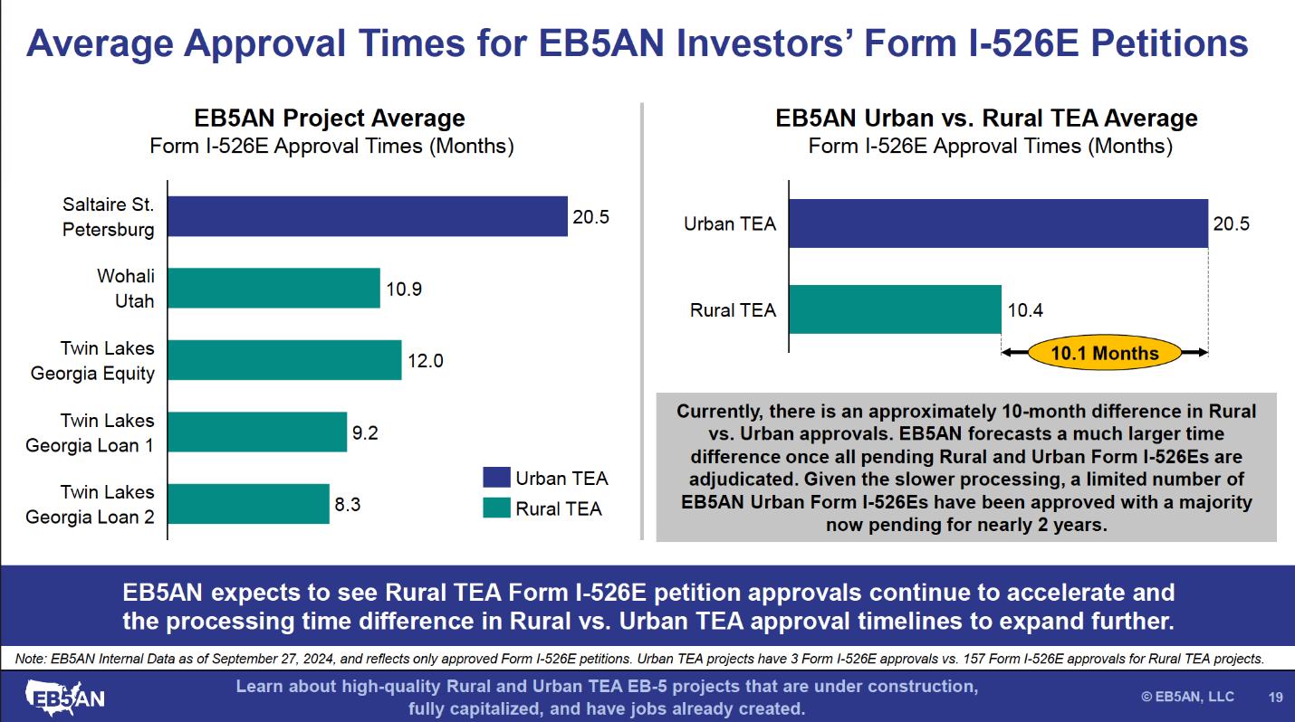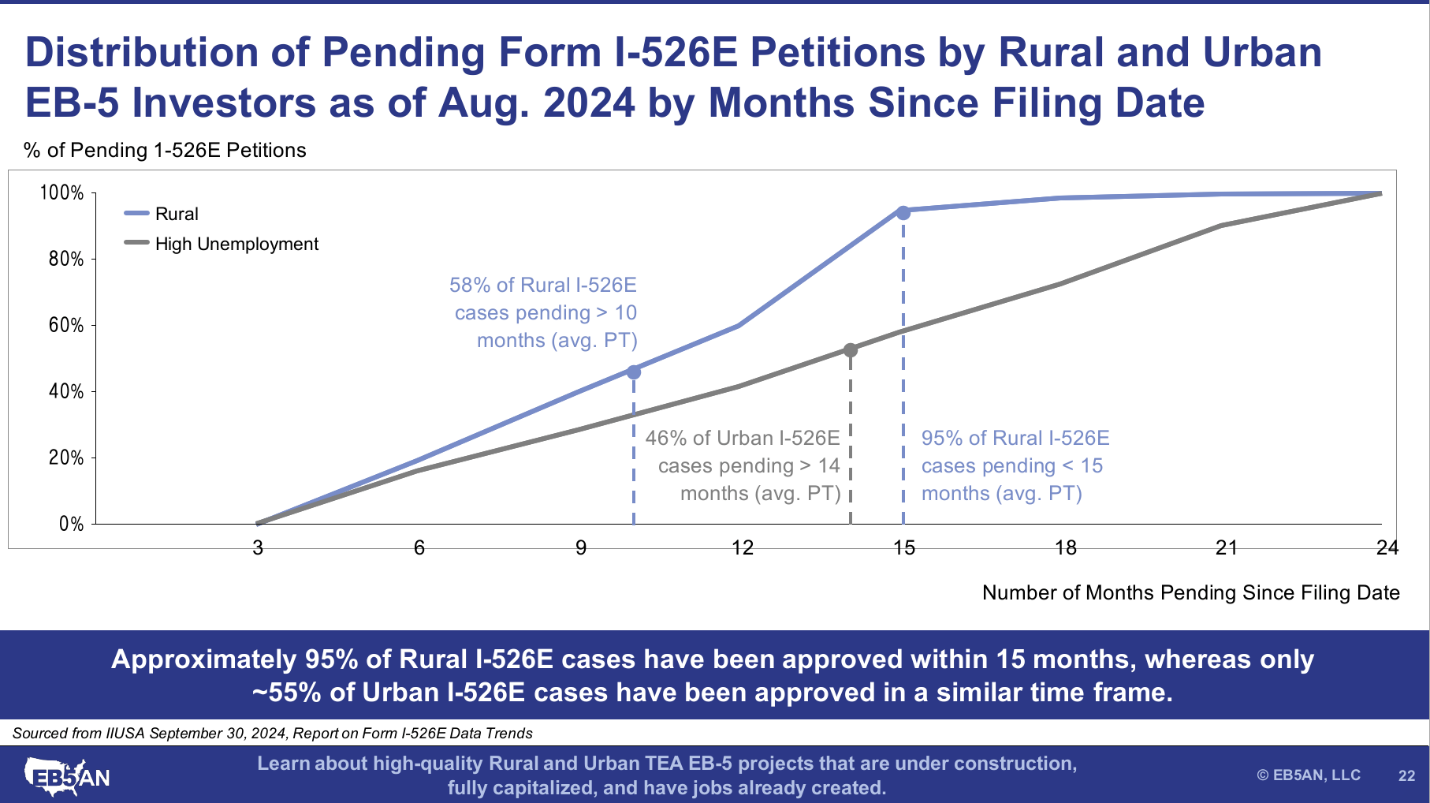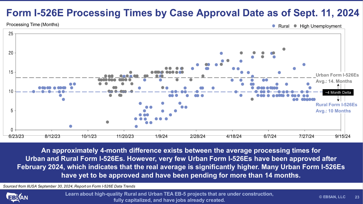 Once all pending Form I-526E petitions are adjudicated, we believe a difference in processing times of at least 12 to 18 months will arise between rural and urban investors. Since we believe in full transparency, we are willing to put this projection out there today. We are simply extrapolating the data and will defend this conclusion with data.