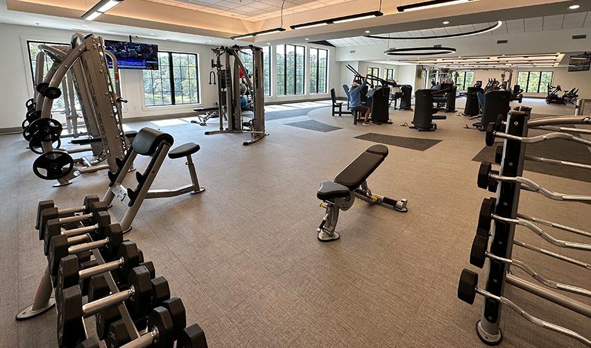 The clubhouse, the community’s centerpiece, is open and fully functional. It includes a ballroom, a fitness center, an indoor pool, and wellness spaces.