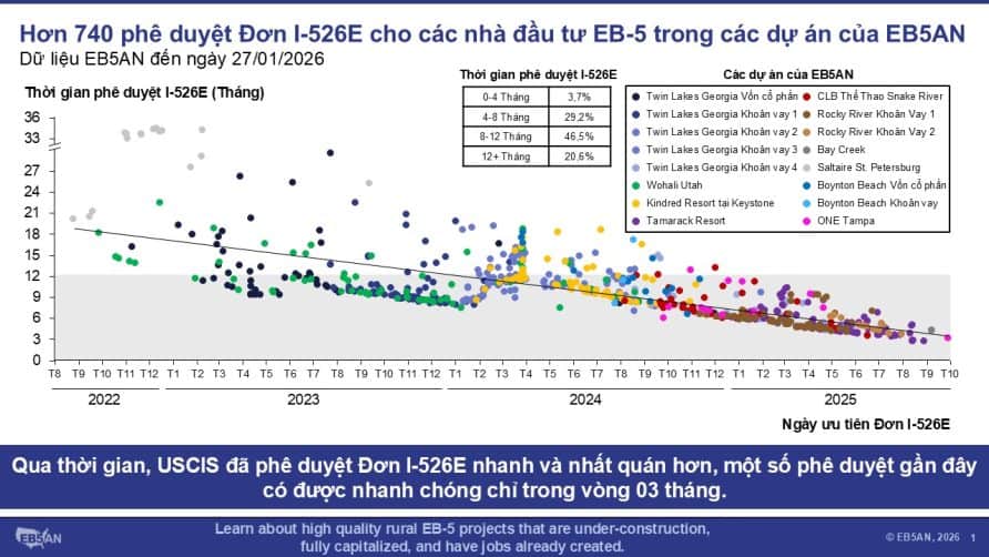 Đạt được hơn 740 phê duyệt Đơn I-526E là một thành tựu to lớn. Cột mốc này không chỉ phản ánh sự tuân thủ của EB5AN đối với các quy định EB-5 mà còn nhấn mạnh tầm quan trọng của việc đầu tư vào dự án khu vực việc làm mục tiêu (TEA) nông thôn với quy trình xử lý ưu tiên.