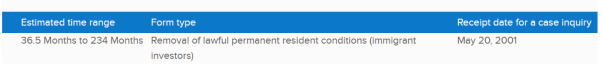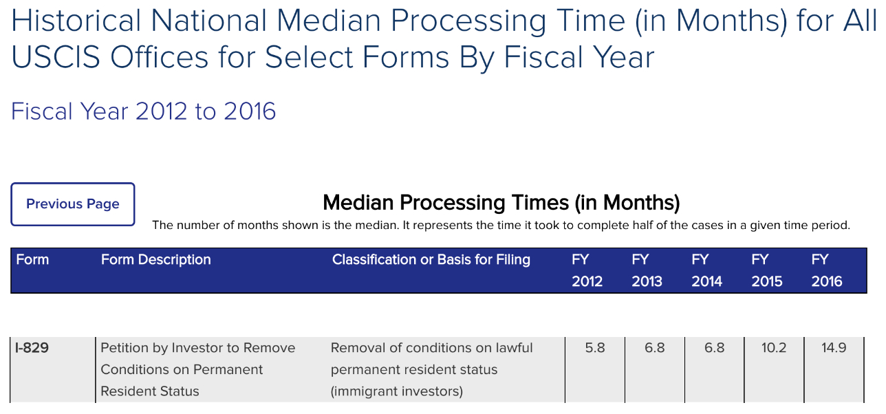 Former I-829 processing time range.