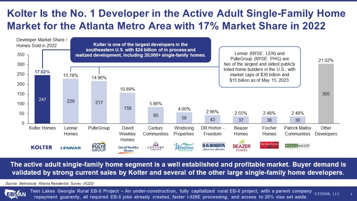 EB5AN is proud to partner with the Kolter Group, one of the leading real estate developers in the U.S., on many of its EB-5 projects. Through its Kolter Homes division, the company has been especially successful in developing single-family home communities for active adults in the Southeast—such as Twin Lakes Georgia, one of the leading EB-5 projects on the market.