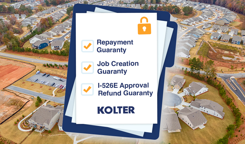 The Twin Lakes Georgia project offers EB-5 investors unparalleled safety. One of the ways Twin Lakes lowers investor risk is through three key guaranties from a parent company of the project’s developer, The Kolter Group. While these guaranties do not eliminate all financial and immigration risk for EB-5 investors, they do make Twin Lakes one of the lowest risk EB-5 projects on the market today.